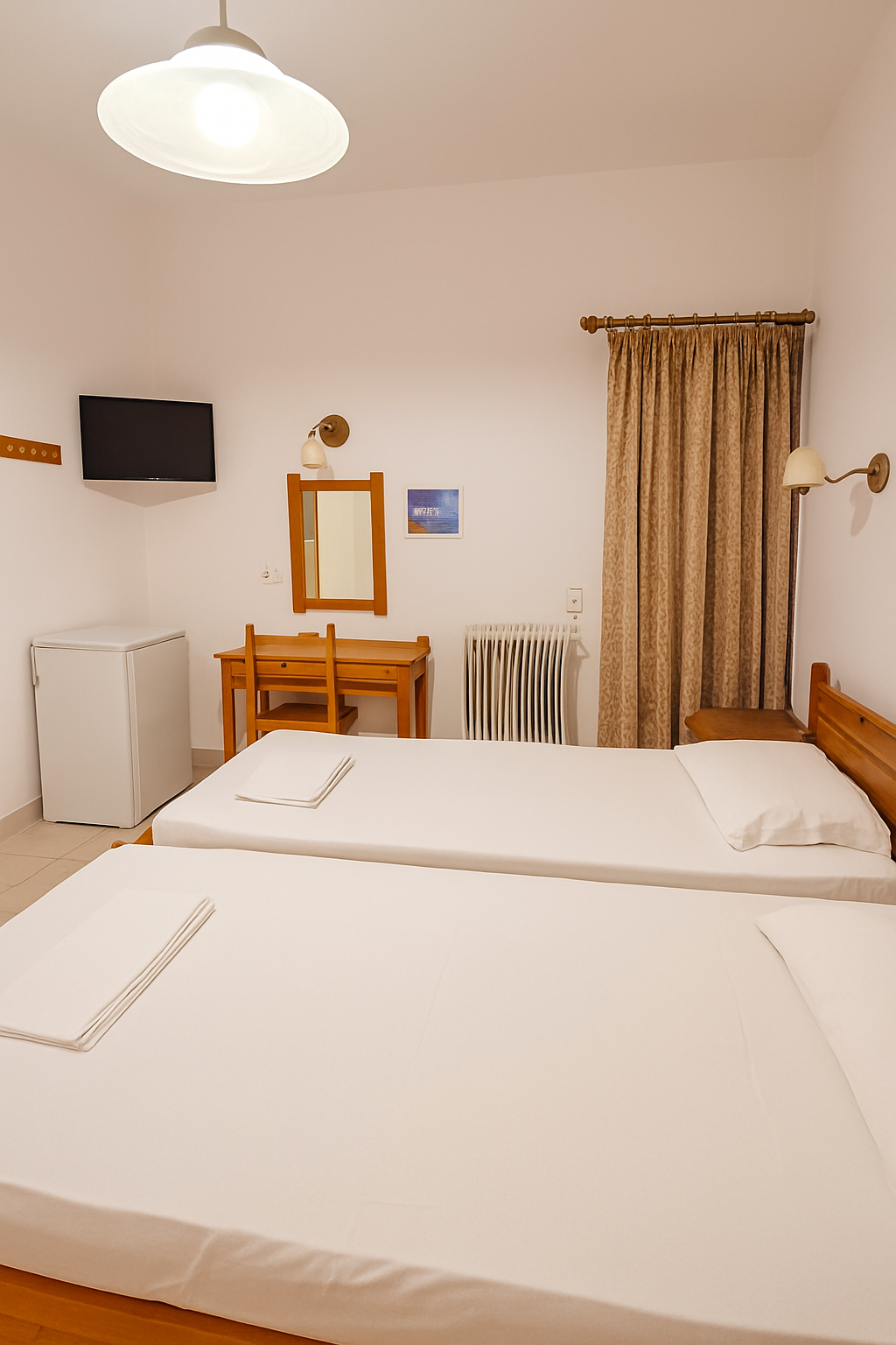 Τα δίκλινα δωμάτια μας με θέα στη θάλασσα είναι ο ιδανικός προορισμός για ζευγάρια ή φίλους που αναζητούν μια χαλαρωτική απόδραση με φόντο το απέραντο γαλάζιο. Σχεδιασμένα για να συνδυάζουν άνεση, λειτουργικότητα και αισθητική, προσφέρουν το τέλειο καταφύγιο για ήρεμες στιγμές και αξέχαστες αναμνήσεις. Με τη θέα της θάλασσας να απλώνεται μπροστά σας, θα νιώσετε την απόλυτη ηρεμία και θα απολαύσετε την κάθε στιγμή.