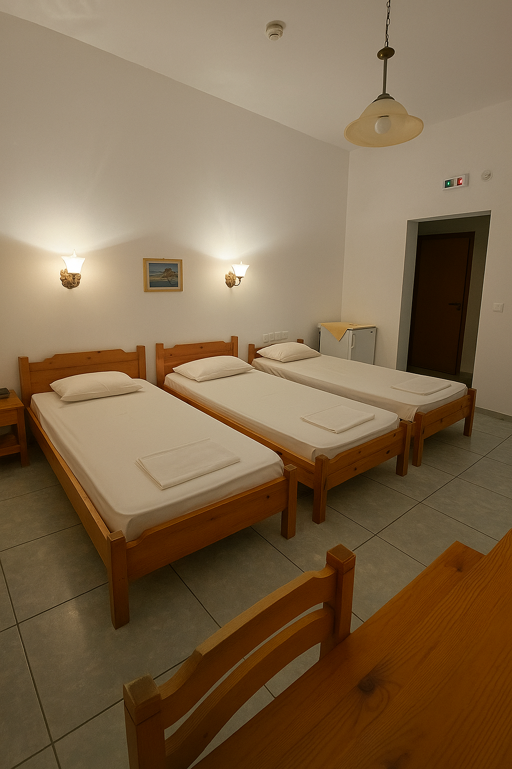 Άνετα κρεβάτια (ένα διπλό και ένα μονό ή τρία μονά κρεβάτια)